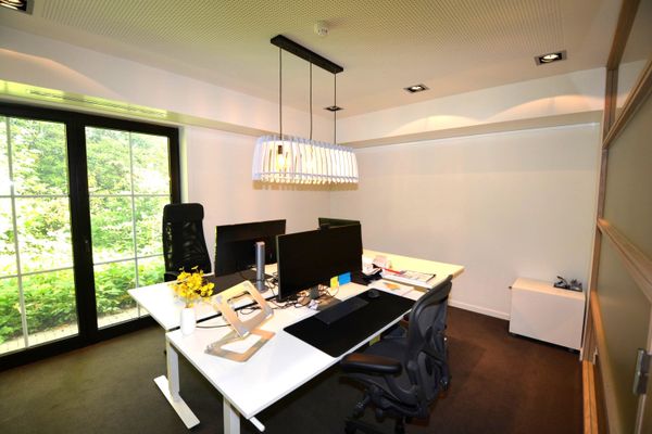 Instapklaar kantoorgebouw met een totale nuttige oppervlakte van 653 m² en ruime parking op een perceel van 2.207 m². Gelegen op een strategische ligging te Zandhoven met zeer goede bereikbaarheid via autosnelweg E34 en E313. Gelijkvloerse verdieping: inkomhal met ontvangstruimte, 6 afzonderlijke kantoren telkens met een oppervlakte van 11 m² tot 20 m²; landschapskantoor (45 m²), archiefruimte, apart sanitair voor dames en heren en ingerichte keuken. Verdieping 1: ruim landschapskantoor (110 m²), vergaderzaal (50 m²), apart bureel, archiefruimte, sanitair en kitchenette. Verdieping 2: appartement / conciërgewoning, bestaande uit: leefruimte, keuken, bureau, slaapkamer en badkamer. Voorts beschikt het gebouw nog over een ruime parking aan zowel de voor- als de achterzijde (> 20 staanplaatsen). Kwalitatief kantoorgebouw met alle modern comfort en commerciële visibiliteit! Eventueel opsplitsbaar. Kantoor is beschikbaar bij akte, appartement is verhuurd.