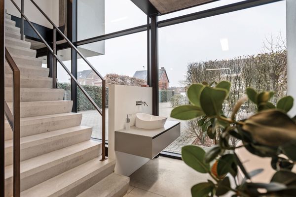 Polyvalent eigendom (bouwjaar: 2014) bestaande uit een handelszaak met commerciële visibiliteit en luxueuze woning met 3 volwaardige slaapkamers en tuin op een commerciële topligging te Ranst. Een totale bruikbare oppervlakte van maar liefst 460 m²! De handelsruimte (ca. 290 m²) bestaat uit een lichte en moderne showroom op het gelijkvloers, kantoor op de verdieping en een grote polyvalente ruimte in de kelderverdieping, voorzien van natuurlijk licht. Kitchenette en sanitair is aanwezig. De woning, gelegen aan de achterzijde van het gebouw, is toegankelijk via een afzonderlijke inkom en omvat op het gelijkvloers een inkomhal met apart toilet; een leefruimte met veel lichtinval en een directe toegang tot de aangelegde tuin met terras, volledig ingerichte keuken en bijkeuken. Op de verdieping zijn er 3 slaapkamers op massieve parket, apart toilet, dressing en luxe badkamer voorzien van ligbad, inloopdouche, lavabomeubel en toilet. Voorts beschikt dit eigendom nog over een ruim oprit, bezoekersparking en garage met automatische poort. Deze recente villa is uitgerust met alle moderne comfort zoals vloerverwarming met warmtepomp (ook in kelder), alu ramen met dubbele beglazing, alarm, regenwaterrecuperatie, ventilatie,... Beschikbaarheid is te bespreken. EPC: A-label.