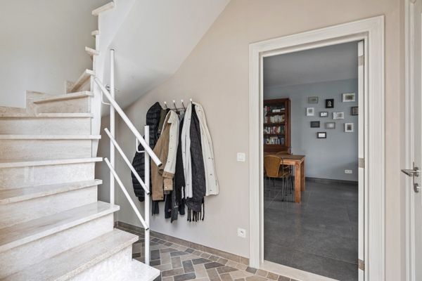 Recente (2010) en energiezuinige H.O.B. met 4 slaapkamers, garage en tuin gelegen in een kindvriendelijke, doodlopende straat maar toch kortbij het centrum van Oelegem, bestaande uit: inkomhal met apart toilet met handenwasser, ruime woonkamer met extra bureau; volledig ingerichte leefkeuken met directe toegang tot terras en tuin, handige bijkeuken met aansluiting voor was- en droogautomaat, extra douche en technische berging. Op de eerste verdieping zijn er 3 volwaardige slaapkamers, walk in dressing; apart toilet en een ruime badkamer voorzien van ligbad, douche en dubbel lavabomeubel. Op de tweede verdieping is er nog een grote slaapkamer / hobbykamer en bergzolder. Deze woning beschikt eveneens over een garage met automatische poort, oprit en aangelegde tuin met terras. Recente woning met alle nodige comfort (CV op aardgas, alarm, PVC schrijnwerk met dubbele beglazing en deels rolluiken, elektriciteit conform). EPC: 118 kWh/m². Beschikbaar bij akte.