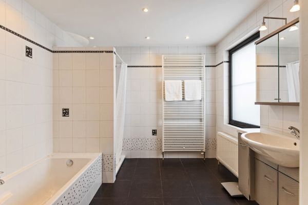 Uitzonderlijk ruim en instapklaar duplex appartement met 4 slaapkamers, 2 badkamers, riant terras en parking te centrum Borsbeek. Het appartement omvat op de 2de verdieping een inkomhal met vestiaire, berging en apart toilet; ruime leefruimte met veel lichtinval dankzij grote raampartijen, toegang via schuifraam tot een zeer ruim terras (ca. 26 m²) aan de achterzijde van het gebouw en een balkon aan de voorzijde van het gebouw (2 m²); ingerichte, open keuken voorzien van ontbijthoek; slaapkamer met ensuite badkamer voorzien van ligbad, douche en lavabomeubel. Op de hoger gelegen verdieping zijn er nog 3 volwaardige slaapkamers op massieve parketvloer, een extra douchekamer met lavabo en toilet en een ruime berging / dressing. Voorts beschikt het appartement nog over een privatieve kelderberging en een autostaanplaats achter het gebouw (momenteel ingericht met garagebox). Individuele nutsvoorzieningen, centrale verwarming op aardgas en ramen in aluminium schrijnwerk met dubbele beglazing. De elektrische installatie is conform! Klein gebouw met zeer lage maandelijkse kosten. Gunstig EPC: 149 kWh/m². Beschikbaar bij akte!