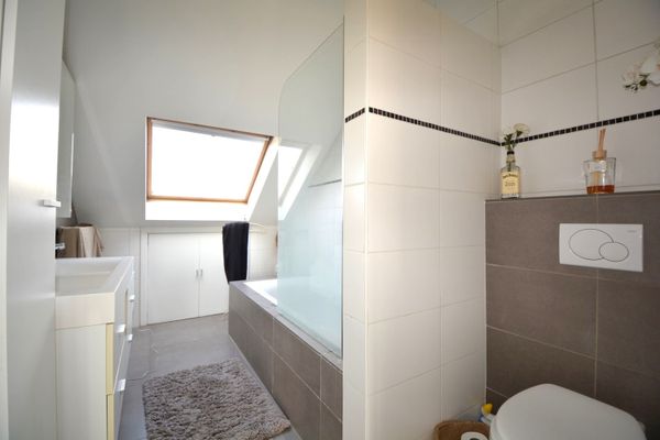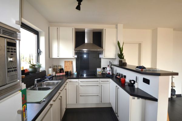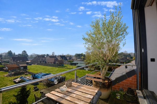 Instapklaar dakappartement op de tweede verdieping met 2 slaapkamers, terras en autostaanplaats op een centrale locatie te Zandhoven, bestaande uit: ruime leefruimte met veel lichtinval en directe toegang tot het terras met ideale zuid oriëntatie en groen zicht; ingerichte open keuken voorzien van keramische kookplaat, dampkap, combi-oven, koelkast en vaatwasser; handige bijkeuken met aansluiting voor wasmachine; 2 volwaardige slaapkamers en badkamer met ligbad met douchescherm, dubbel lavabomeubel en toilet. Voorts beschikt het appartement nog over een privatieve kelderberging (16 m²), ruime zolder (29 m²), privatieve autostaanplaats voor het gebouw en een fietsenstalling. Elektriciteit is conform! Centrale verwarming op aardgas en ramen in aluminium schrijnwerk met dubbele beglazing. Klein gebouw met lage maandelijkse kosten. Heden verhuurd. EPC: 208 kWh/m².