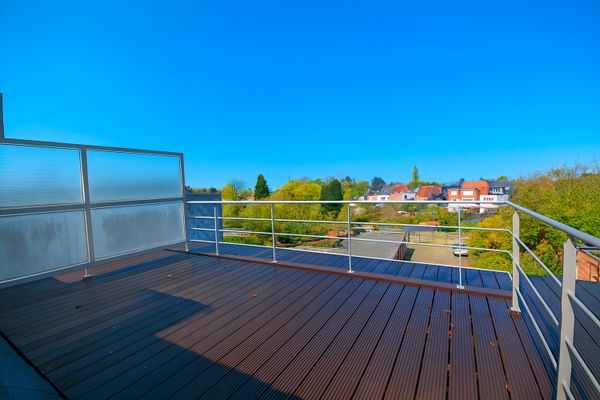 Uitzonderlijk ruim appartement (type halfopen bebouwing) met 3 slaapkamers en riant dakterras (50 m²), gelegen op de eer...